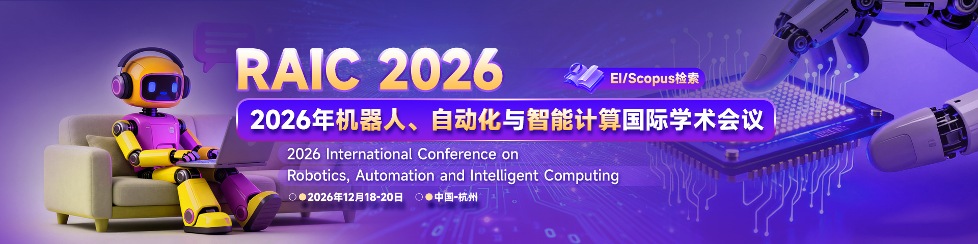 The RAIC 2026 aims to gather professors, researchers, scholars and industrial pioneers all over the world. RAIC 2026 is the premier forum for the presentation and exchange of past experiences and new advances and research results in the field ofRobotics, Automation and Intelligent Computing. The conference welcomes contributions which promote the exchange of ideas and rational discourse between educators and researchers all over the world. The organizing committee of conference is pleased to invite prospective authors to submit their original manuscripts toRAIC 2026.